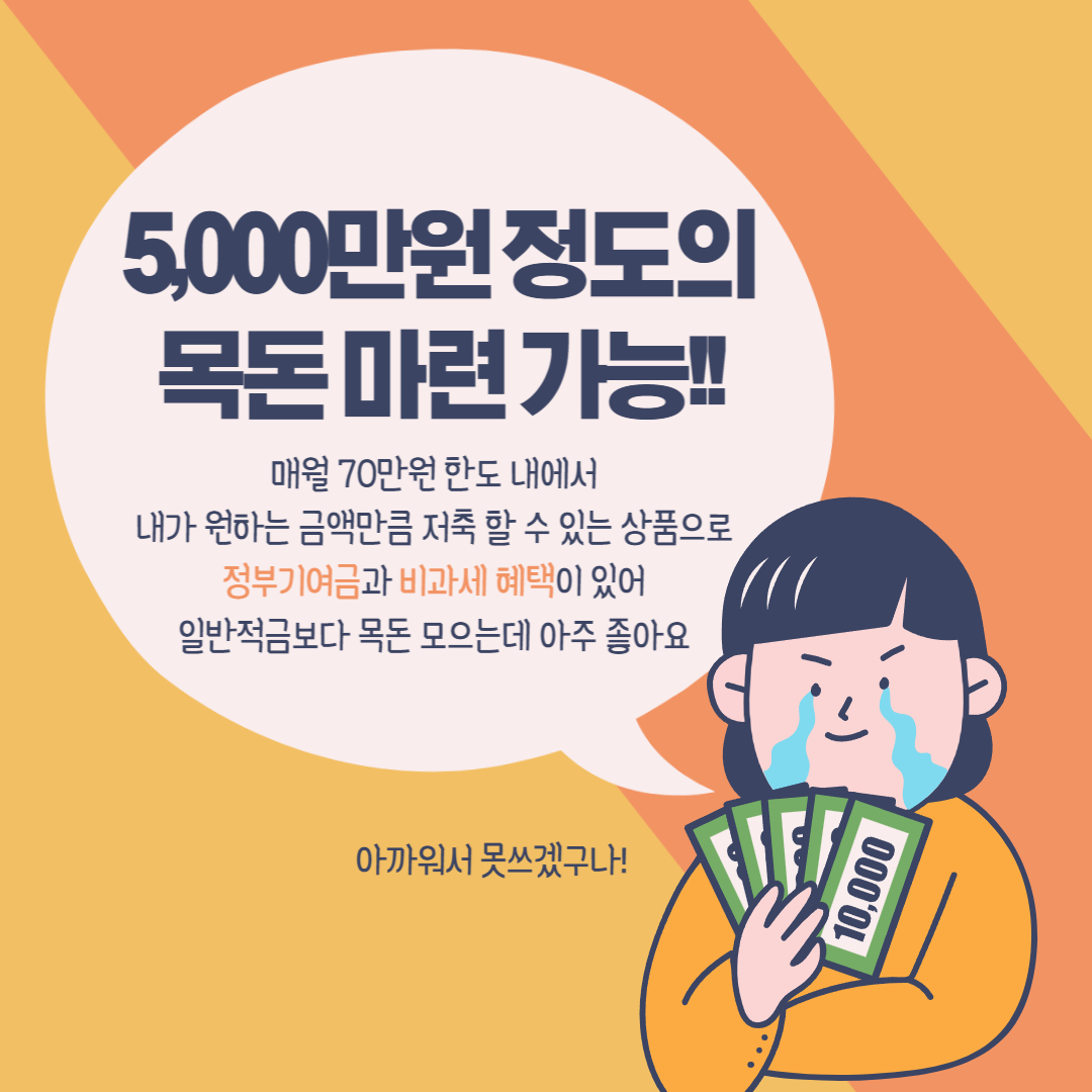 - 총 급여 6,000만 원 이하일 경우 정부기여급 지급 및 비과세적용